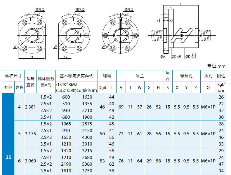 內(nèi)循環(huán):螺帽外徑精巧。(節(jié)省空間)適合于導(dǎo)程/絲桿軸外徑較小者。珠卷數(shù):選定珠卷數(shù)要考慮要求的性能、壽命等,其比較。凸緣形狀(Flange):本公司備有三種標(biāo)準(zhǔn)型式(A型式、B型式、C型式)請(qǐng)配合螺帽安裝部分之空間加以選定。也可依客戶(hù)要求制造特殊凸緣形狀。油嘴孔:精密用標(biāo)準(zhǔn)螺帽設(shè)有油嘴孔,設(shè)計(jì)時(shí)請(qǐng)標(biāo)明其尺寸,以便本公司加工。